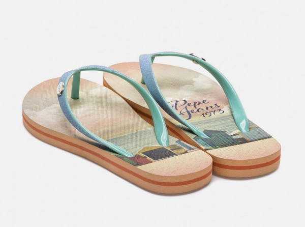 Typical girls beach sandals by Pepe Jeans: * model Beach Summer * fancy beach photo print design